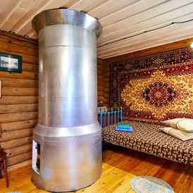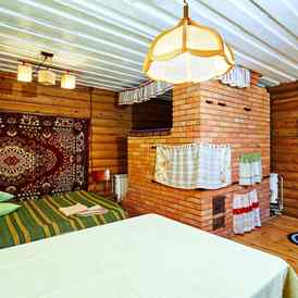 • комната с круглой печью, антикварной мебелью, двумя полуторными кроватями и раскладным диваном